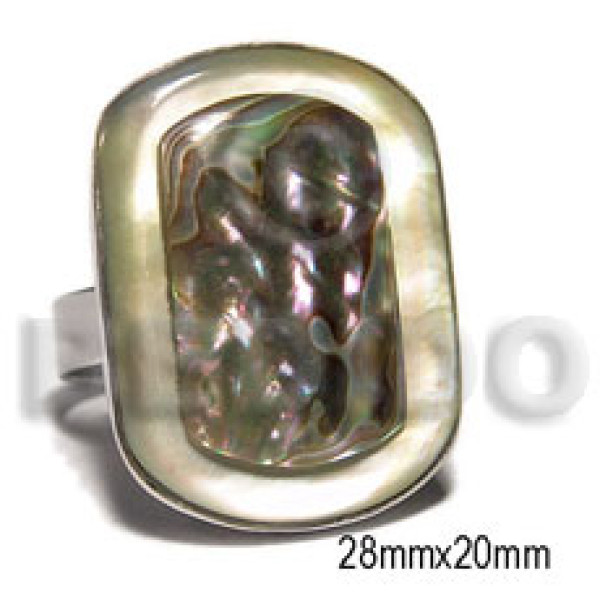 big accent haute hippie 28mmx20mm / adjustable metal ring/ green shell / paua combination..