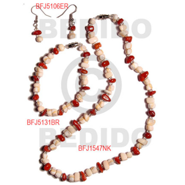 coral 4-5mm coconut Pokalet. orange coconut splashing combination & dangling hammershell heishe..