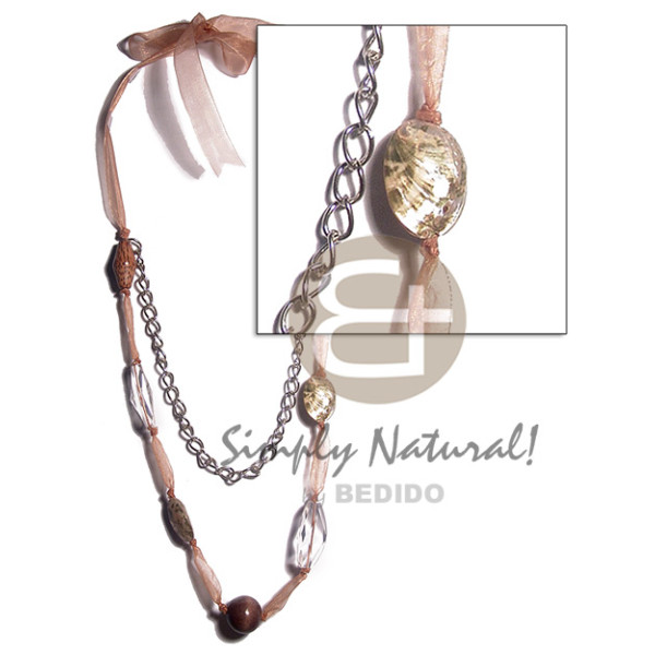 2 pcs. philippine abalone, 2pcs chunky wood beads, 1 pc brown kukui nut , 2 pcs clear acrylic crysta..