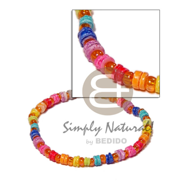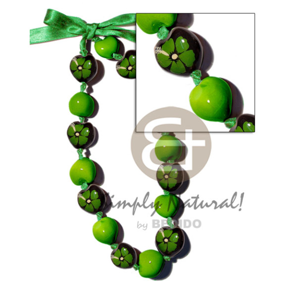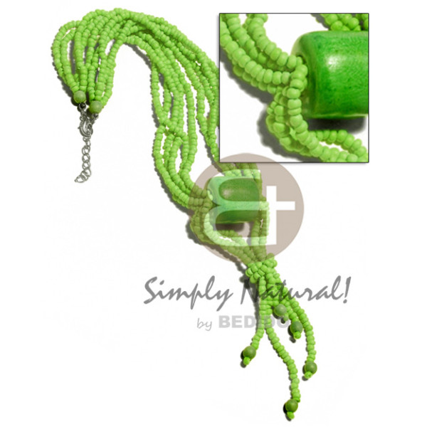 tassled 5 layers 2-3mm coconut Pukalet 23mmx23mm cylinder nat. wood accent /lime green and green t..