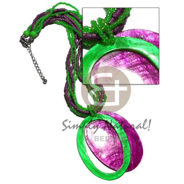 5 rows 2-3mm coconut heishe/glass beads 65mm laminated capiz solid oval and 65mm capiz oval ring pa..
