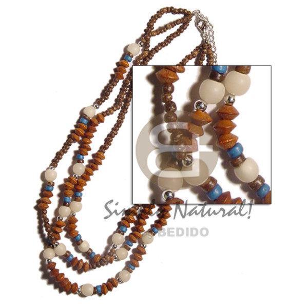 7-8mm nat. white coconut heishi dyed round nat. wood beads combination..