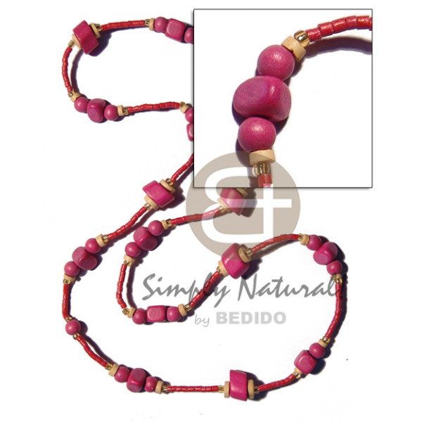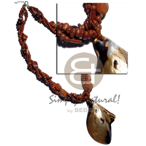 asstd. wood beads neckline chunky cowrie shell cracking in quarter moon shape / 18in..