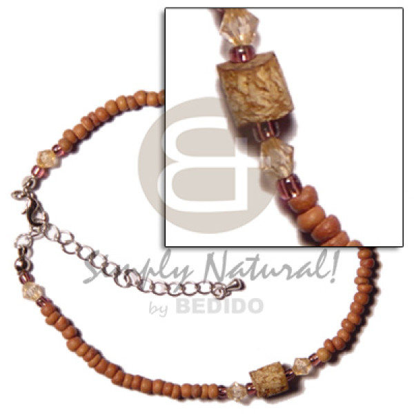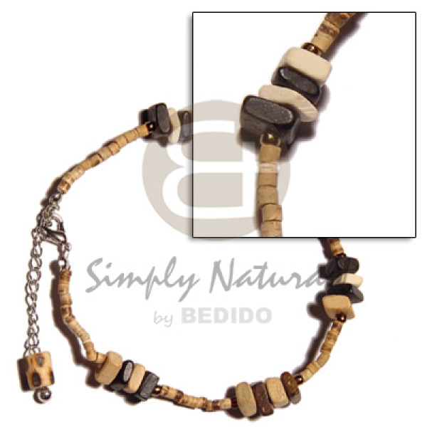 2-3 coconut heishi natural coconut square cut & dangling tube wood burning..