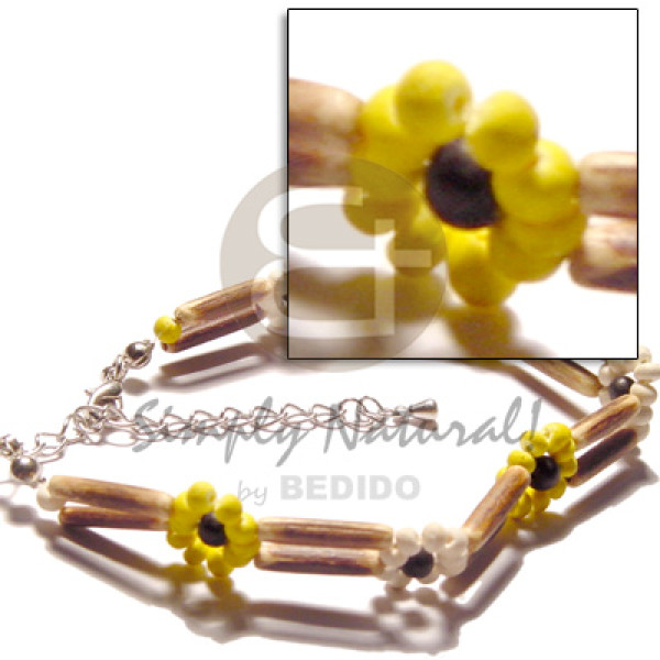 2 rows sig-id wood tube yellobleach white 2-3mm coconut pukalet flower..