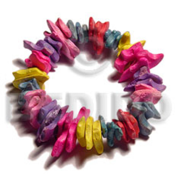 2-3mm coconut heishi nat. brown hoop wire bracelet/adjustable shell & wood beads..