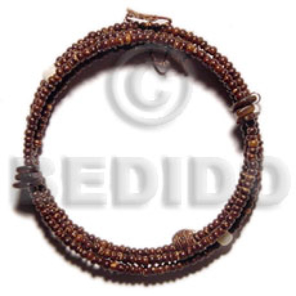 2-3mm coconut Pukalet nat. brown hoop wire bracelet/adjustable shell & wood beads..
