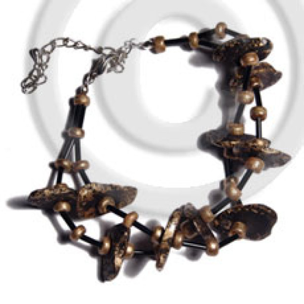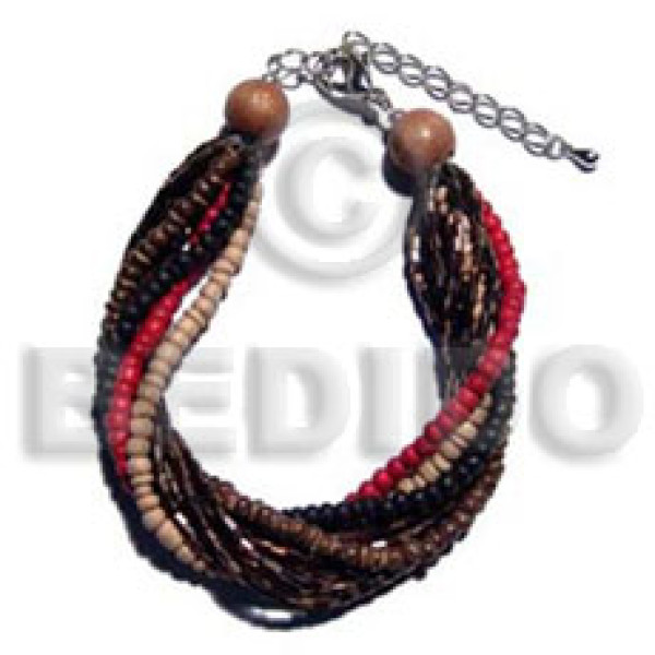 twisted 4 rows 2-3mm coconut Pukalet - nat. white/nat brown/red/black combination 5 rows brown cut ..