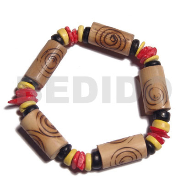bamboo tubes burning bright yellow white rose shell, bright yelloblack 7-8mm coconut Pukalet combi..