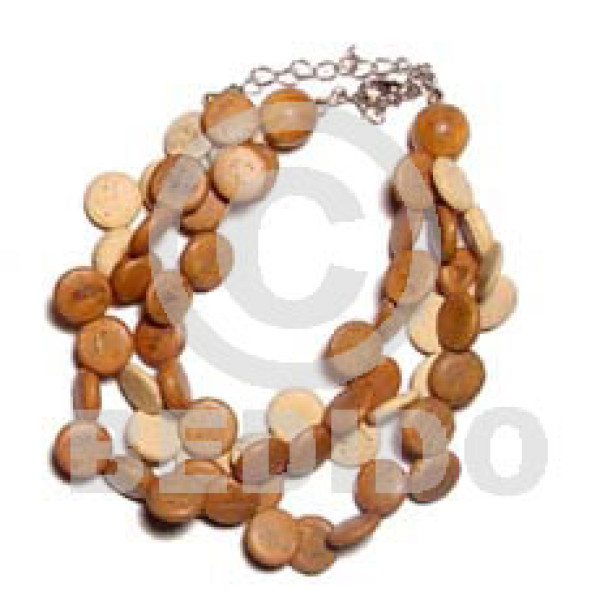 3 rows sidedrill coconut nat./bleach/wood bead bleach/wood ricebeads and acrylic crystals..