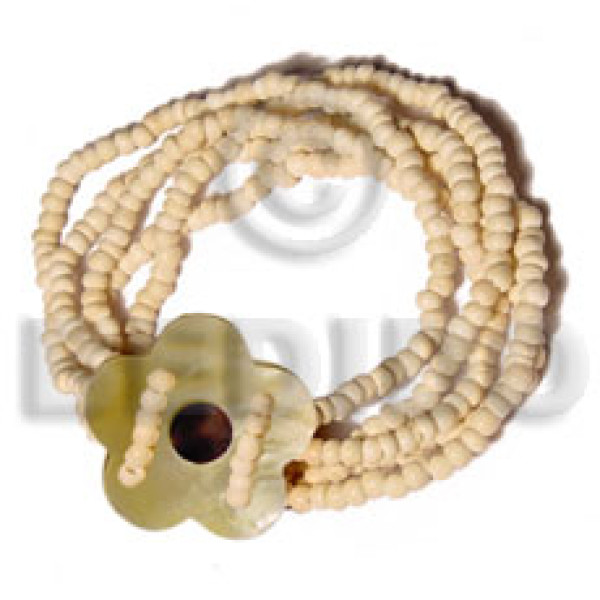 2-3mm coconut heishi nat. white hoop wire bracelet/adjustable buri & palmwood beads..