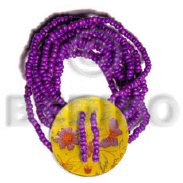 10 layers elastic violet 2-3mm coconut Pokalet. 35mm round handpainted MOP..