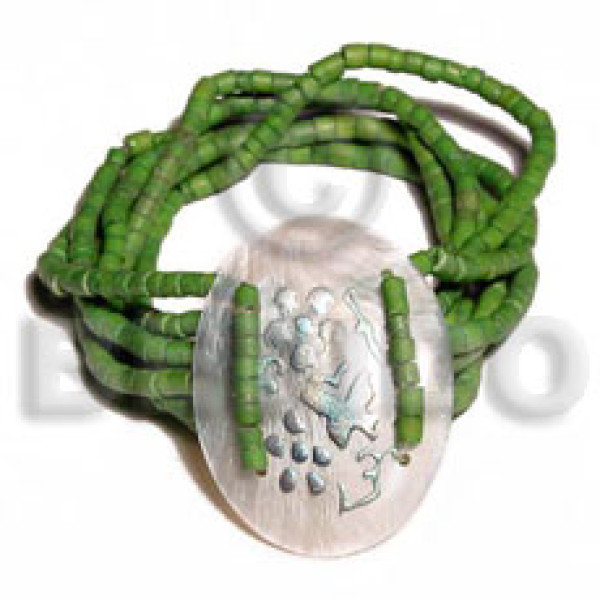 5 layer elastic 2-3mm green coconut heishi 35mm oval handpainted hammershell..