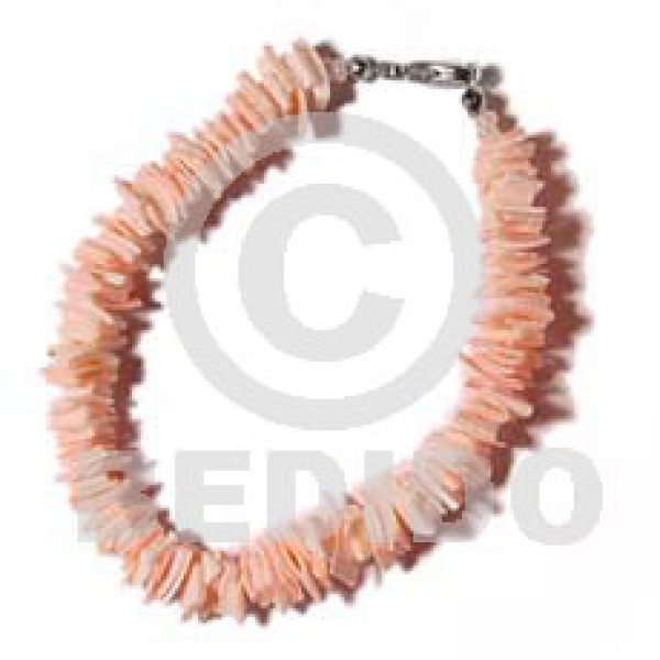 2 rows pink wood tube matching 4-5mm coconut Pokalet. & pink rose elastic bracelet..