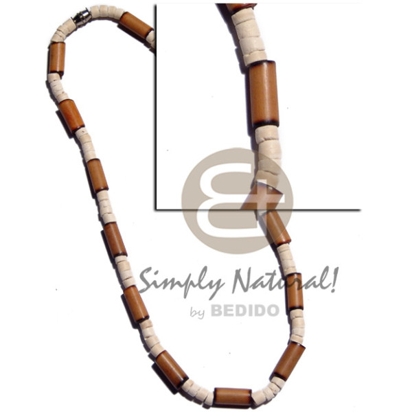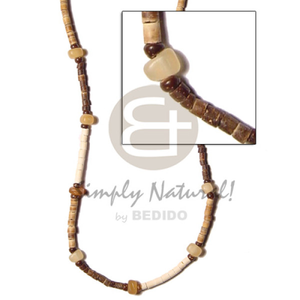 4-5mm coconut heishi black slidecut nat. wood beads and horn beads accent..