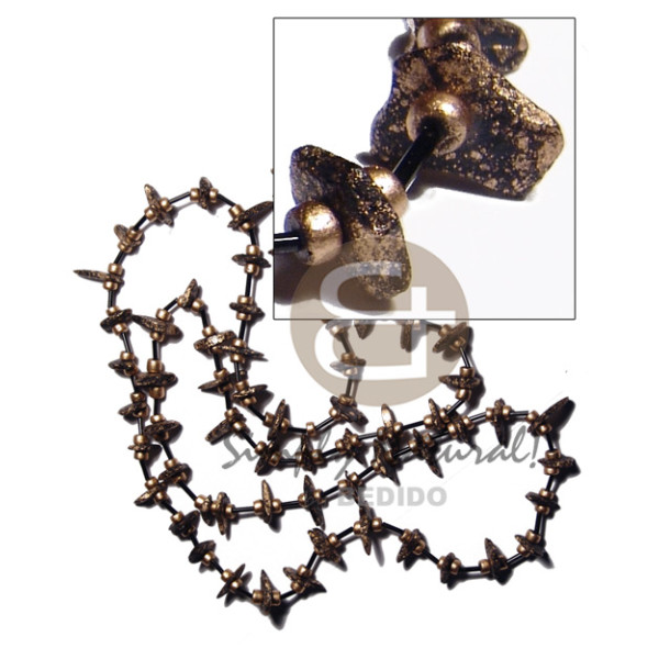 4-5mm coconut Pukalet & cut beads black coconut chips bronze metallic splashing / 36 in...