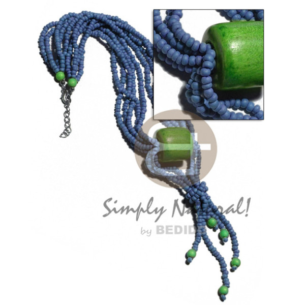 tassled 5 layers 2-3mm coconut Pukalet 23mmx23mm cylinder nat. wood accent / royal blue and forest..