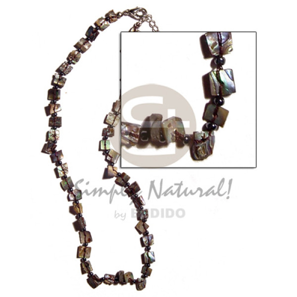 2 rows floating blacklip & 2-3mm black coconut Pokalet. with w=75mm brownlip leaf pendant..