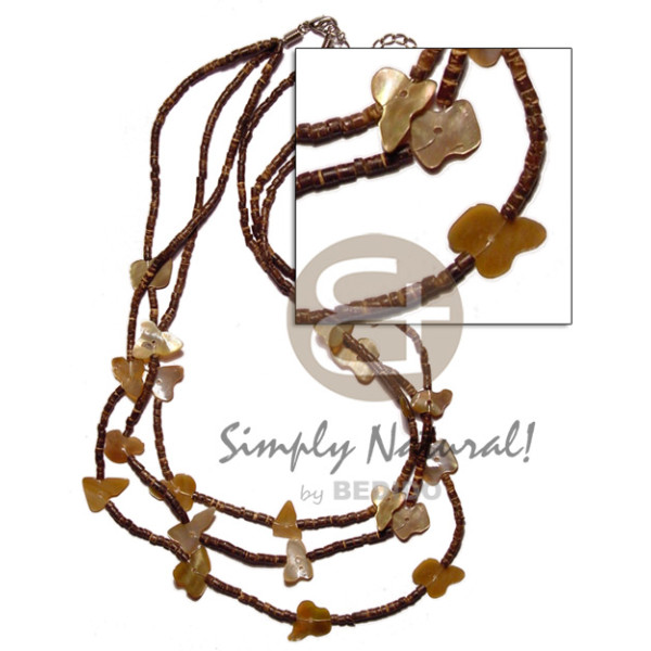 3 layers 2-3m mocca coconut heishi white clam and anber horn nuggets combination and dangling 3 pcs..