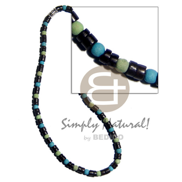 7-8mm black coconut heishi dyed round nat. wood beads in aqua blue and mint green combination..