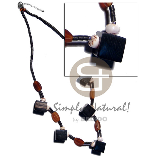 2-3mm black coconut heishi diced 18mmx18mm black carabao horn and amber horn accent..