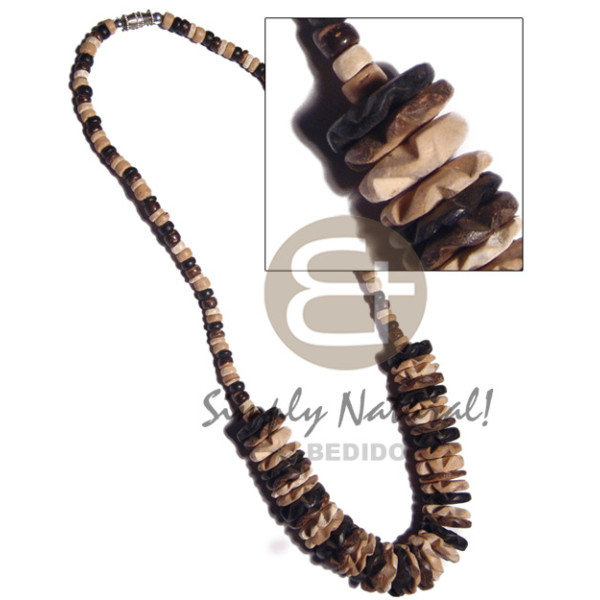 4-5mm coconut Pukalet ans 15mm coconut flower combination inblack/nat./brown/bleached tones..