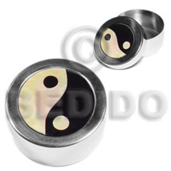 stainless metal round casing inlaid MOP & black tab shell/ yin yang design..