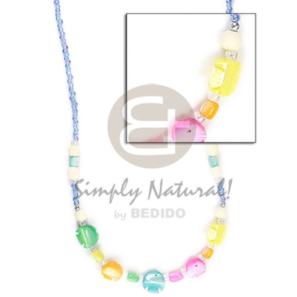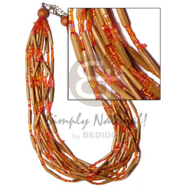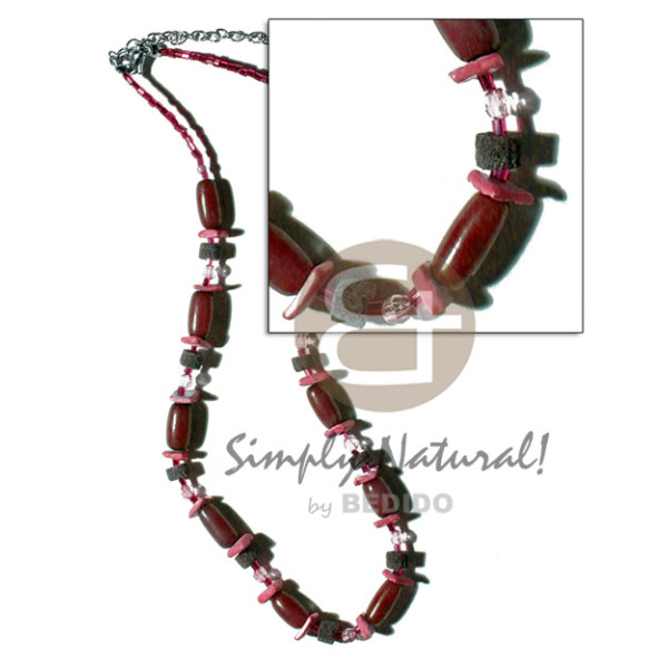 2 layers chained cut glass beads asstd. wood beads, robles 20mm round wood beads, wrapped 20mm wood..