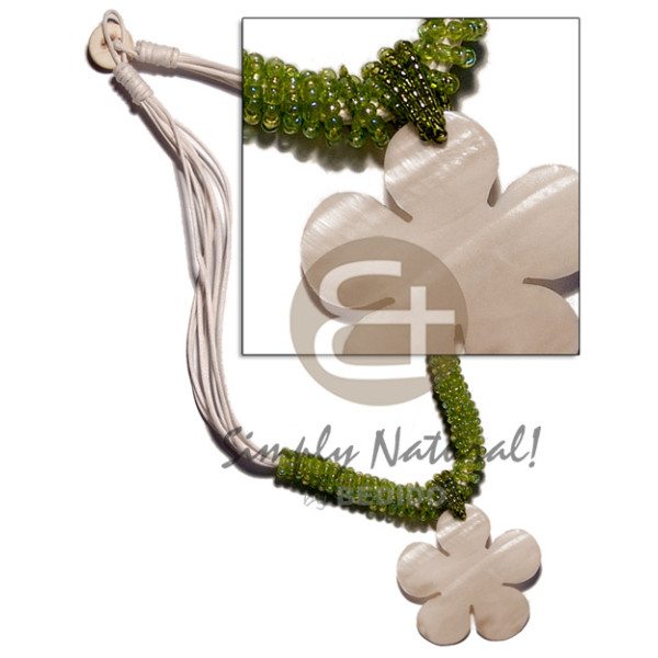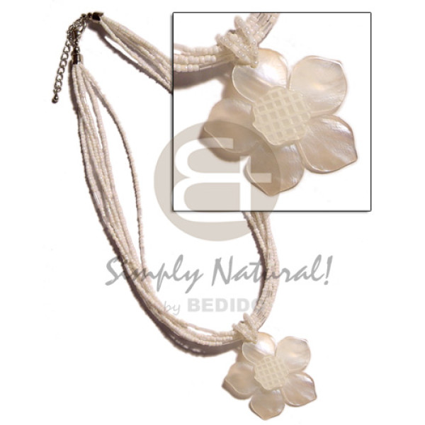6 rows white multi layered glass beads natural white 45mm flower hammershell pendant grooved nect..