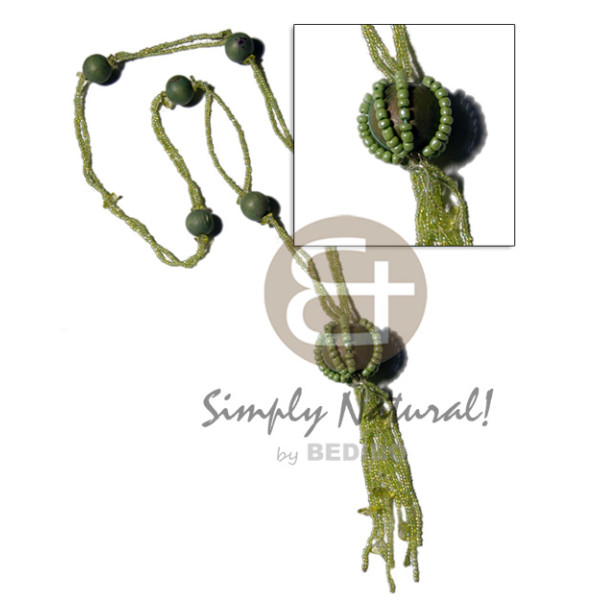 2 rows tassled green glass beads wood beads combination / 36 in...