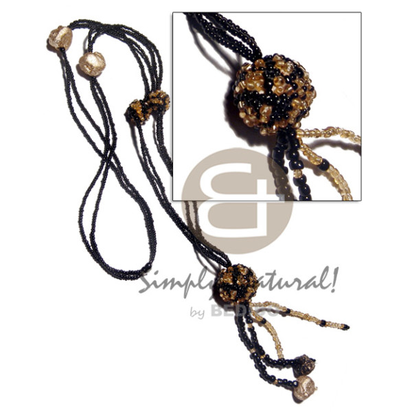 2 rows tassled black glass beads stone gold nugget and beaded wood beads / black and gold tones / 3..