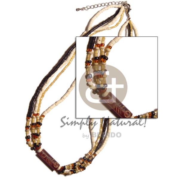 4 rows 2-3mm coconut heishi black/bleach/glass beads amber bone tube..