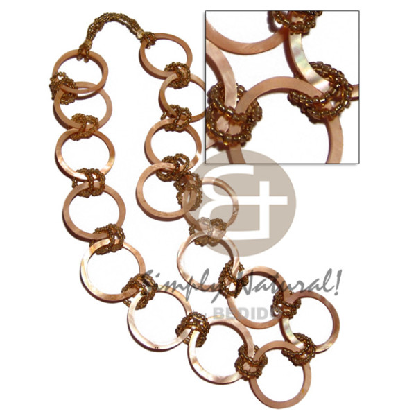 12 pcs. of 35mm (5mm) kabibe orange shell round rings yellow gold glass beads / 30in..