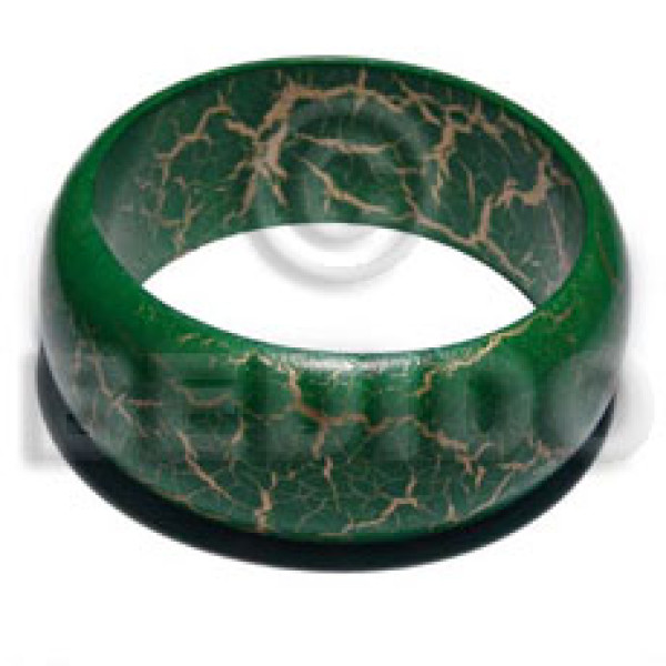 nat. wood bangle in green & gold metallic crackle painting ht=30mm thickness=8mm inner diameter=65mm..