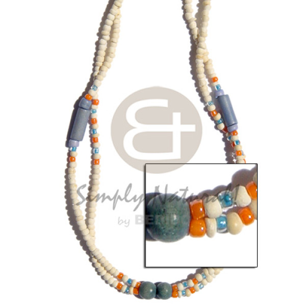 2-3mm 2 rows coconut bleached white Pukalet blue wood tube and balls/glass beads alt..