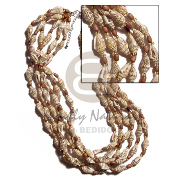 6 layer nassa tiger rice wood beads & glass beads combination..