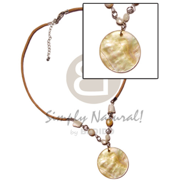 40mm round MOP pendant troca beads in wax cord..