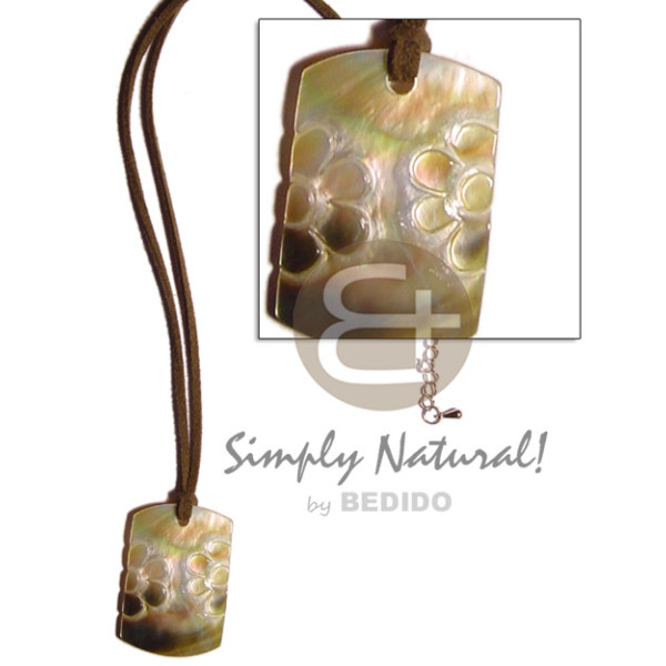 40mm blacklip dog tag double flower clear embossed in leather thong..