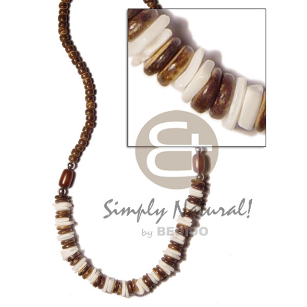 wax cord coconut Pokalet/wood beads & tube bone tusk pendant..