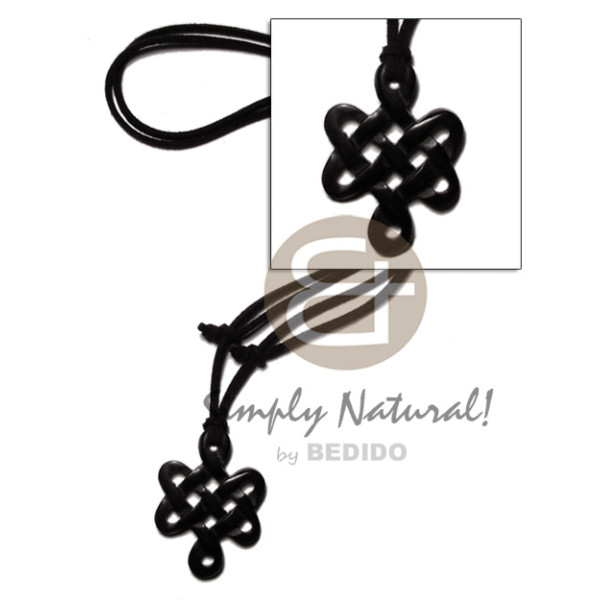 celtic knot black carabao horn 40mm on adjustable leather thong..