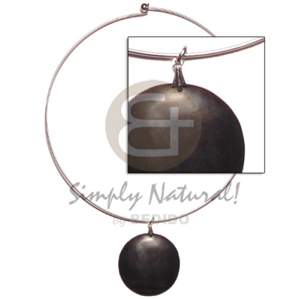 round 50mm black horn/golden horn pendant on 2 layers black glass beads black coconut sq. cut/bambo..