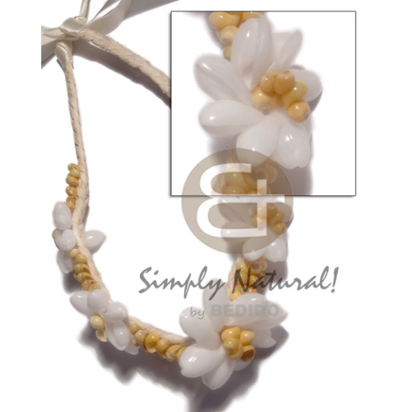 22 pcs. brown kukui nuts yellow mongo shell rings / 30in in matching adjustable ribbon the maximu..