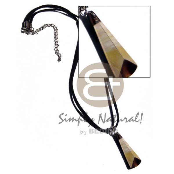 40mmx15mm laminated MOP/blacktab combination resin backing in leather thong..