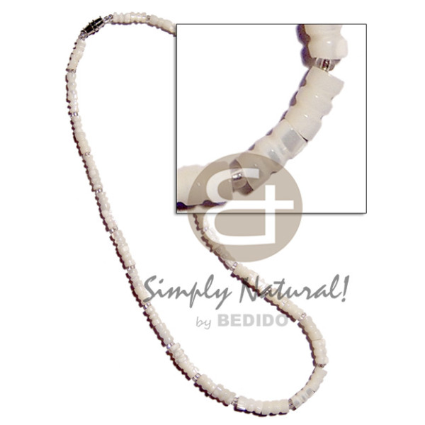 dangling 7 pcs. 17mmx9mm laminated MOP bars resin backing in double leather thong..