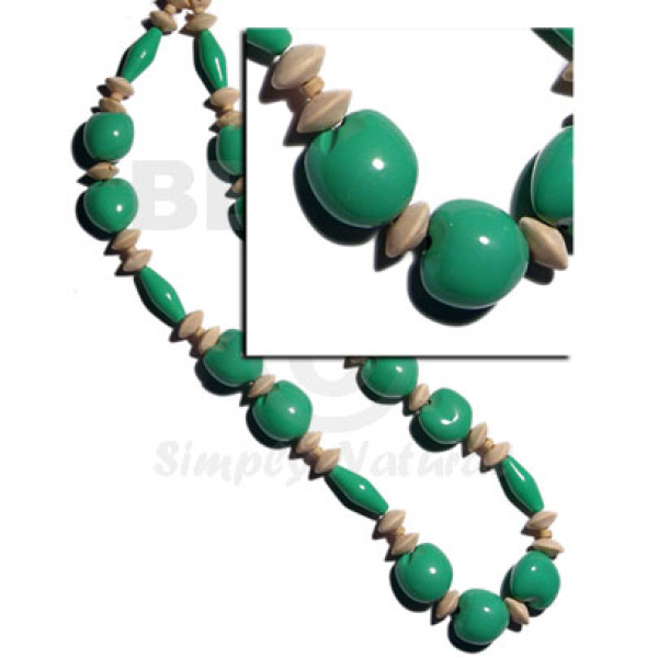 lei / kukui seeds and nat. wood beads in green combination / 32 in..