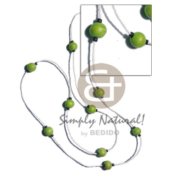 single layer textured painted wood beads matching splashing white rose shells and glass beads / gre..