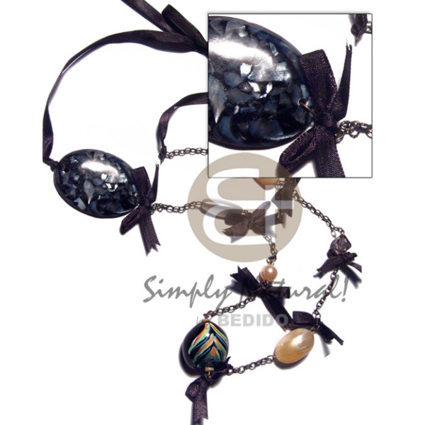 50x36mm hammershell chips in laminated black resin gold mouth shells, peacock kukui nuts, ressin nug..