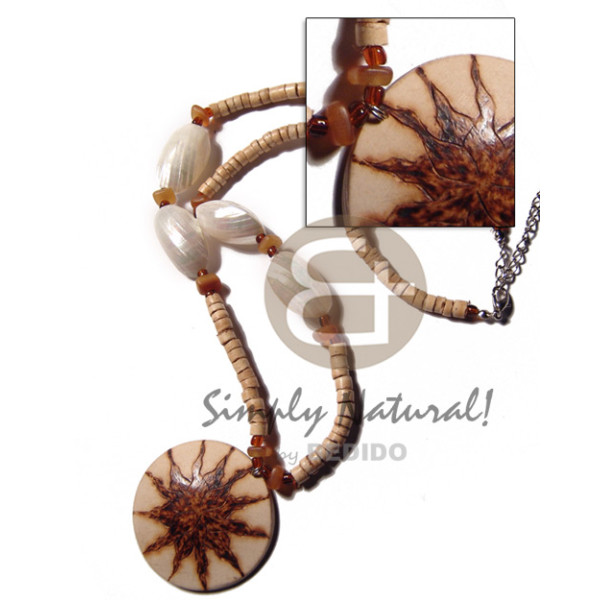 45mm coconut nat. white burning on a 22in. 4-5mm nat. white coconut heishi neckline silver mouth ..