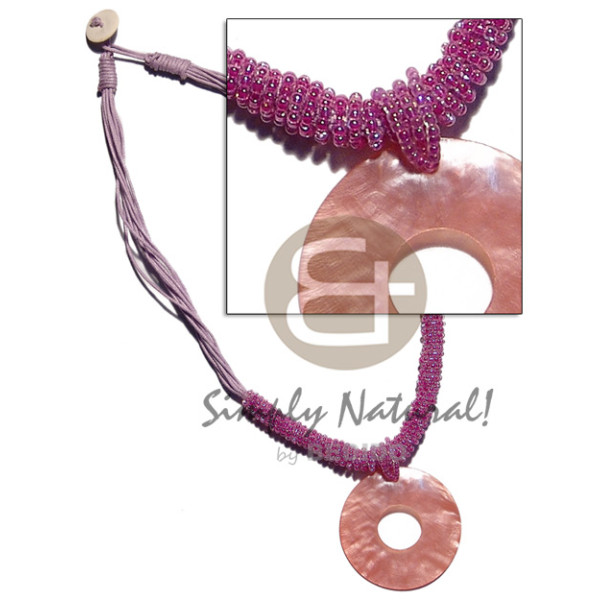 pink tones wrapped wood beads / 30mm/15mm/ and flat capsule 45mm pearl bead & white rose shell comb..