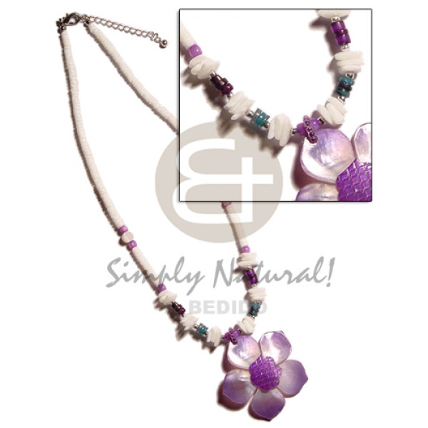 22in. 2-3mm coconut heishe/hammershell sq. cut & agsam bamboo combination pendat - 80mmx45mm rectan..